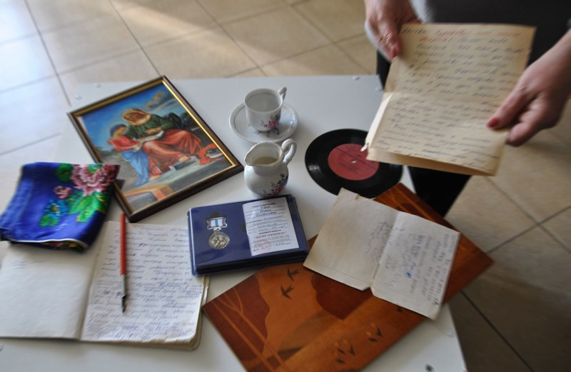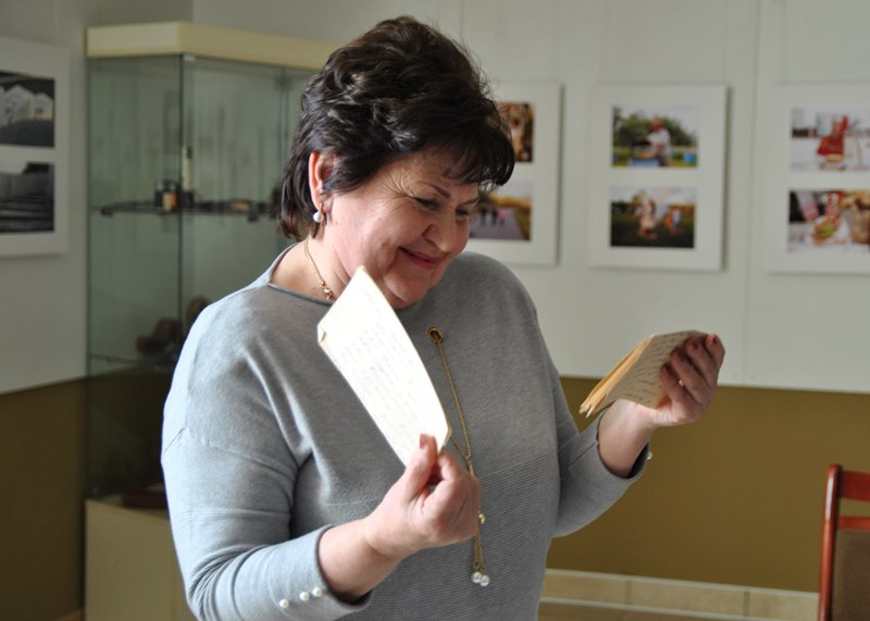 Быццам сакавітая звонкая песня, ліліся расповеды Марыі Горыд. Пачала Марыя Гендрыкаўна з матулінай хустачкі, у якую мама ўбіралася па святах. Маленькая Марыя з захапленнем глядзела на сіні з кветкамі шоўк і марыла хутчэй вырасці, каб таксама прымераць гэтую прыгажосць. Ішоў час, і стала зразумелым, што мода на хусткі незваротна прайшла, але і цяпер раз-пораз тую сінюю хустку носіць новая гаспадыня. Працягнула Марыя Гендрыкаўна ўспамінамі пра асабістае. Зараз у людзей столькі магчымасцей кантактаваць паміж сабой, а вось раней, калі нават тэлефон быў не ў кожнай хаце, перапісвацца можна было толькі папяровымі лістамі. Пад роўнымі радкамі мужа Марыі Гендрыкаўны незразумелыя іерогліфы: лісты калісьці знайшлі дзеці, і, яшчэ не ведаючы пісьмовай граматы, пакінулі і свае “аўтографы”.